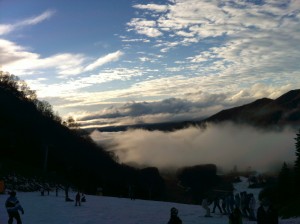 初日の夕方には、滑り同様、晴れ間も見えて雲海が綺麗でした。